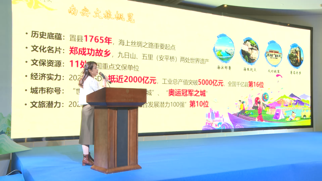 活動(dòng)中,泉州文旅產(chǎn)業(yè)推薦官康蓉婷圍繞泉州文旅資源稟賦、投資政策紅利及產(chǎn)業(yè)發(fā)展?jié)摿φ归_招商推介,系統(tǒng)呈現(xiàn)了泉州文旅產(chǎn)業(yè)的核心優(yōu)勢與發(fā)展機(jī)遇。泉州青年文旅推薦官、南安城市文化推薦官王海燕聚焦南安文旅特色資源,推介了成功小鎮(zhèn)(石井)、九日山祈風(fēng)、大盈溪田園風(fēng)光、成功街、岑兜高甲戲劇村、市區(qū)消費(fèi)環(huán)線、楊子山大地藝術(shù)文旅示范區(qū)、山水九都、楊梅山文旅綜合體、云頂山旅游度假區(qū)10個(gè)重點(diǎn)文旅招商項(xiàng)目。