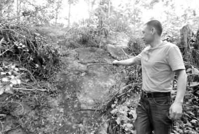 格內村村民向記者介紹仙人腳印。