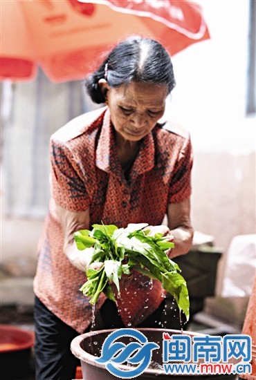 洗一把青菜,奶奶為孫子準(zhǔn)備午餐