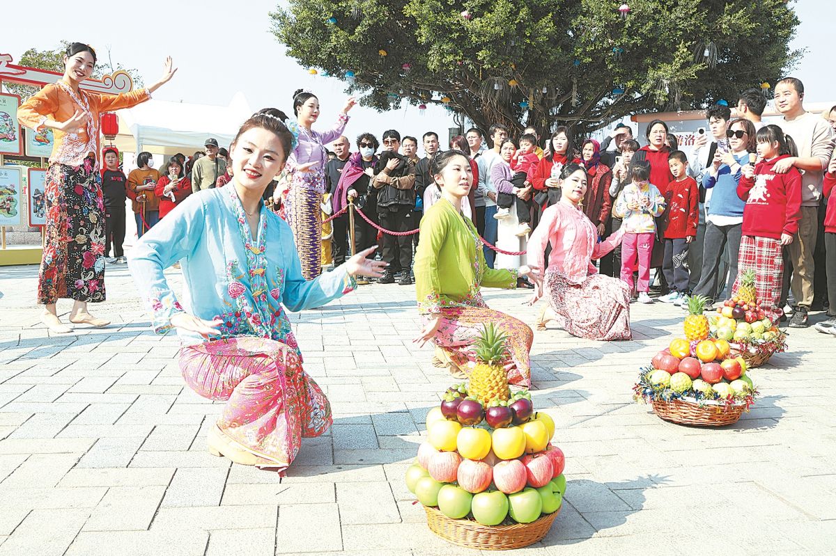 2月19日,“世遺橋畔·煙火洛江”2026橋南古街新春文旅嘉年華在泉州洛陽橋畔舉行。身穿印尼服飾的舞者起舞,將現(xiàn)場氣氛點(diǎn)燃。賴淑玲 攝