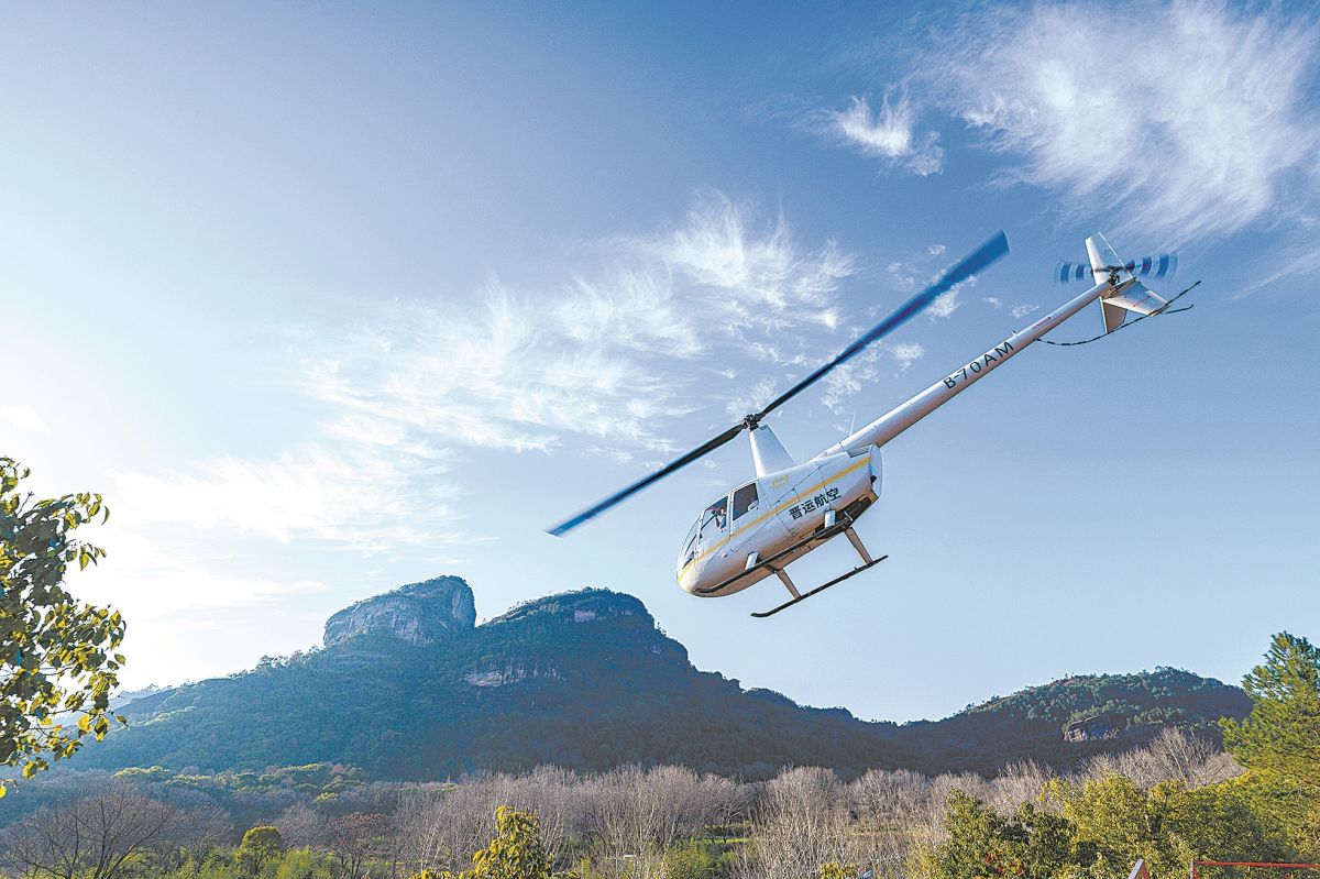 2月20日,武夷山市直升機(jī)低空游覽項(xiàng)目人氣旺盛。該項(xiàng)目于2026年春節(jié)期間正式運(yùn)營,在大王峰下為游客提供空中觀景服務(wù)。陳天博 攝
