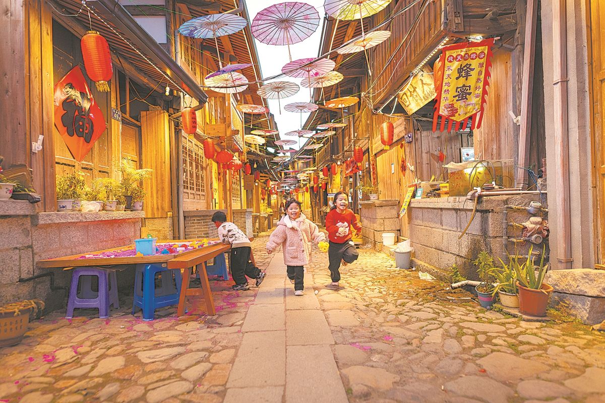 2月20日,寧德市蕉城區(qū)洋中鎮(zhèn)東山古街,幾名孩童在擁有千年歷史的古街巷中盡情奔跑嬉戲。丁天霖 攝