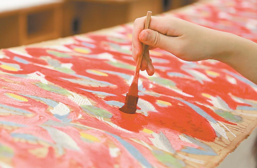 琉球“紅型”織物上色