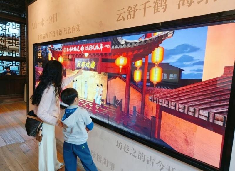 “閩式生活圖鑒”民俗微縮景觀則將八閩大地凝練成一幕幕可觸碰的生活切片,以寸縷之微、分毫之精,復(fù)刻出茶事、戲樂、婚慶、美食、技藝等人間百景,讓閩人的空間觀、精神信仰與文化底蘊(yùn),從抽象走入具象,從記憶走入眼前。此外,會“講故事”的清代屏風(fēng)、大幅《山海韻》光影畫卷、《方言打卡》《節(jié)氣有聲》等互動裝置同樣人氣高漲,讓數(shù)字技術(shù)成為傳承閩俗文化的鮮活載體。