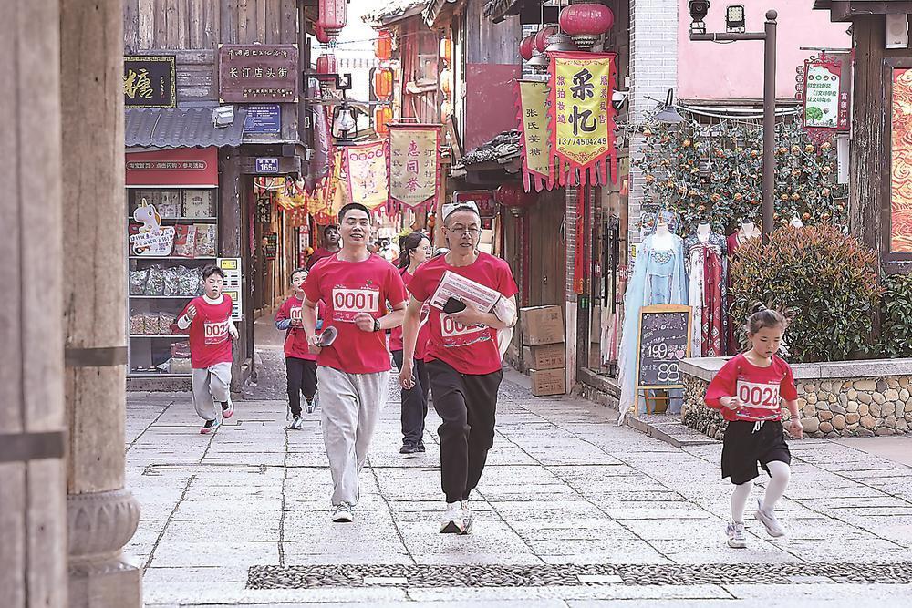 參賽選手在古城內(nèi)奔跑。