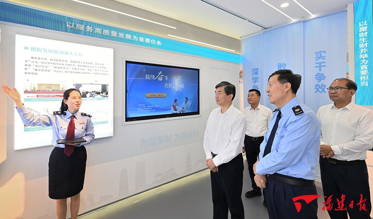 周祖翼走進(jìn)福州市臺(tái)江區(qū)稅務(wù)局辦稅服務(wù)廳,詳細(xì)察看了“高效辦成一件事”稅務(wù)特色項(xiàng)目、征納互動(dòng)服務(wù)在線(xiàn)窗口、“稅悅工作室”等,詢(xún)問(wèn)納稅服務(wù)、對(duì)接政務(wù)服務(wù)、融入基層治理等工作情況。在省稅務(wù)局,周祖翼一行回顧了福建稅收事業(yè)發(fā)展歷程,察看了“智慧稅務(wù)”大數(shù)據(jù)中心和有關(guān)處室,認(rèn)真了解稅務(wù)數(shù)字化轉(zhuǎn)型、政策咨詢(xún),以稅資政助力經(jīng)濟(jì)社會(huì)高質(zhì)量發(fā)展等情況。周祖翼希望大家用好稅費(fèi)數(shù)據(jù),精準(zhǔn)研判經(jīng)濟(jì)運(yùn)行態(tài)勢(shì),著力加強(qiáng)對(duì)收入結(jié)構(gòu)、產(chǎn)業(yè)結(jié)構(gòu)等深層次問(wèn)題的分析研究,提出更多有價(jià)值的參謀建議,更好地服務(wù)省委、省政府科學(xué)決策。