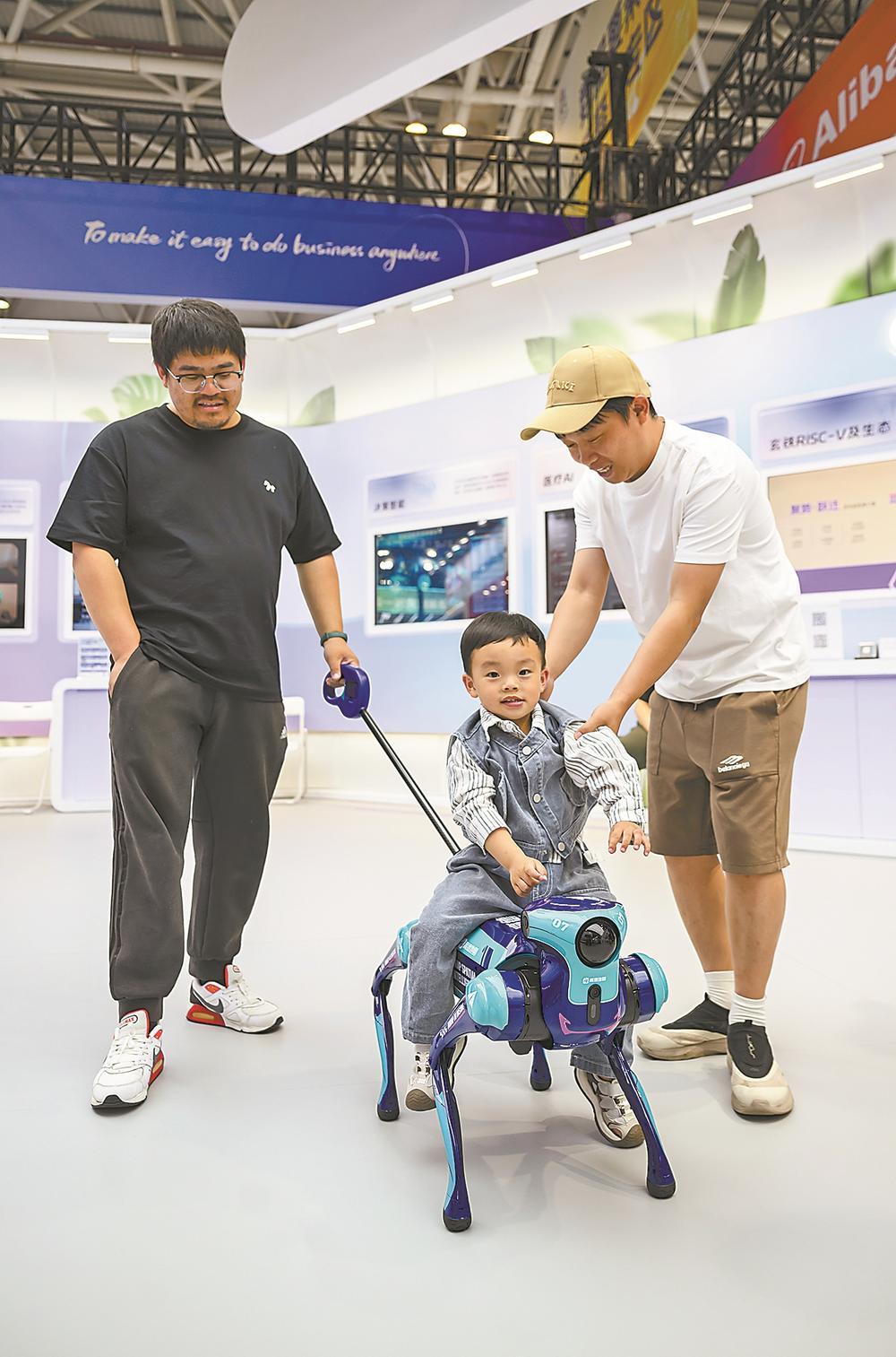 4月28日,在第九屆數(shù)字中國建設(shè)峰會現(xiàn)場,由高德帶來的全球首款開放環(huán)境全自主智能導(dǎo)盲犬——“途途”吸引了許多來賓觀看、體驗。福建日報記者 施辰靜 攝