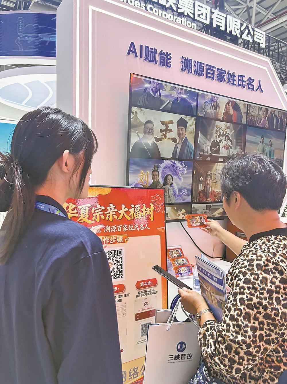 4月28日,眾多市民和參展企業(yè)代表在網(wǎng)龍展區(qū)體驗由AI、VR、AR等技術(shù)共同編織的數(shù)字奇境。圖為市民輸入姓氏與祖籍信息,AI隨即生成一棵專屬3D宗族“福樹”,并與姓氏名人同框合影。福建日報記者 林蔚 攝