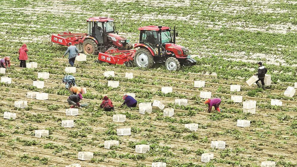 近日,平潭幸福洋吹沙地上一派豐收盛景。作為吹沙填海形成的土地,幸福洋部分田塊土壤含鹽量曾高達(dá)3.2‰至18.27‰,遠(yuǎn)超農(nóng)作物耐受閾值,加之土壤顆粒細(xì)、孔隙度低、板結(jié)嚴(yán)重,一度成為“不毛之地”。2023年,當(dāng)?shù)芈?lián)合福建省農(nóng)科院,采用“物理—化學(xué)—生物綜合改良法”,通過挖溝排鹽、高壟脫鹽、噴灌洗鹽,搭配酸性肥料與生物菌肥中和堿性,給土地做“深度理療”,使得土壤含鹽量降至2‰左右,板結(jié)的鹽堿地蛻變?yōu)樗绍浀?ldquo;海綿田”,為農(nóng)作物生長創(chuàng)造了良好條件。
