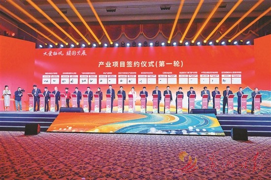 莆田市民營(yíng)經(jīng)濟(jì)暨產(chǎn)業(yè)發(fā)展大會(huì)昨日舉行。圖為產(chǎn)業(yè)項(xiàng)目簽約儀式現(xiàn)場(chǎng)。全媒體記者 蔡昊 攝
