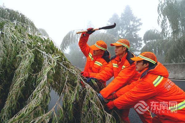 1月21日,建寧縣國(guó)道528線(xiàn)巖上路段、省道308線(xiàn)甘家隘路段及蕉坑路段相繼出現(xiàn)路面結(jié)冰和毛竹被冰凌壓垮倒伏至路面的現(xiàn)象,影響公路安全通行。