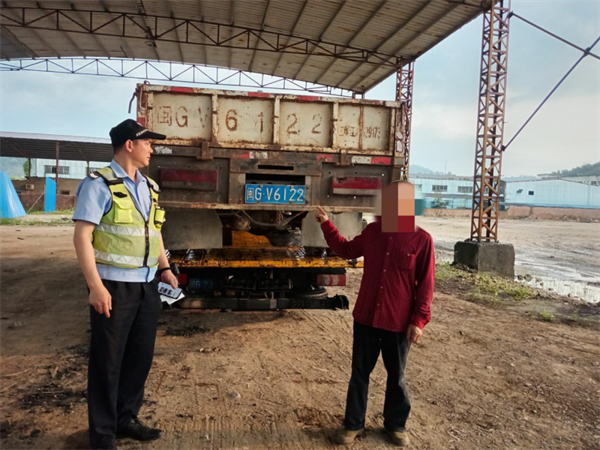 案例2:4月16日17時(shí)許,三元交警發(fā)現(xiàn)一輛懸掛號(hào)牌為閩GV6122號(hào)的輕型貨車,該車駕駛?cè)松嫦玉{駛已達(dá)報(bào)廢標(biāo)準(zhǔn)的汽車類機(jī)動(dòng)車上道路行駛,該車停靠在巖前吉口路段,三元交警聯(lián)合巖前派出所,前往該路段對(duì)該車輛進(jìn)行依法查扣。