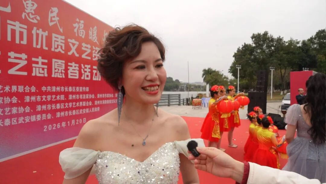 我今天是演唱一首原創(chuàng)歌曲漳州美如畫,我希望大家能夠了解我們漳州的美,很高興來到這里演出,看到群眾這么開心快樂,掌聲這么熱烈。