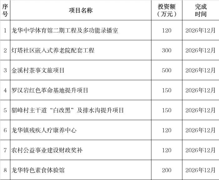 2026年龍華鎮(zhèn)計劃實施的為民辦實事項目