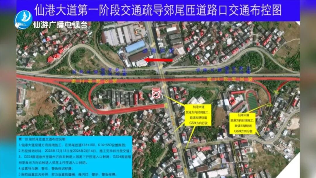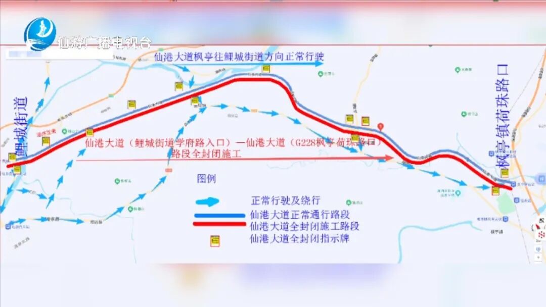 鑒于仙港大道沿線村鎮(zhèn)密集、車流集中,工程采取了半幅封閉施工。2025年12月13日至 2026年2月13日,仙港大道右側(cè)路段(城區(qū)往楓亭方向)實施全封閉施工,左側(cè)道路正常通行。