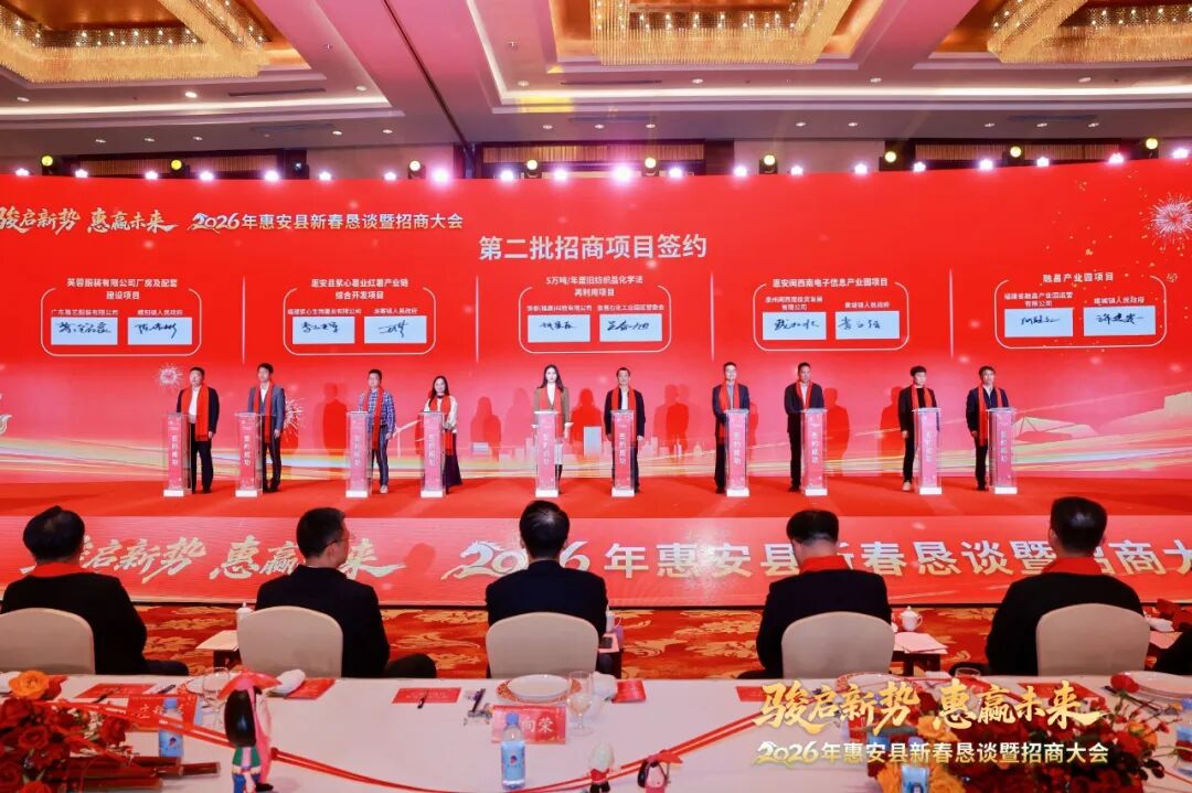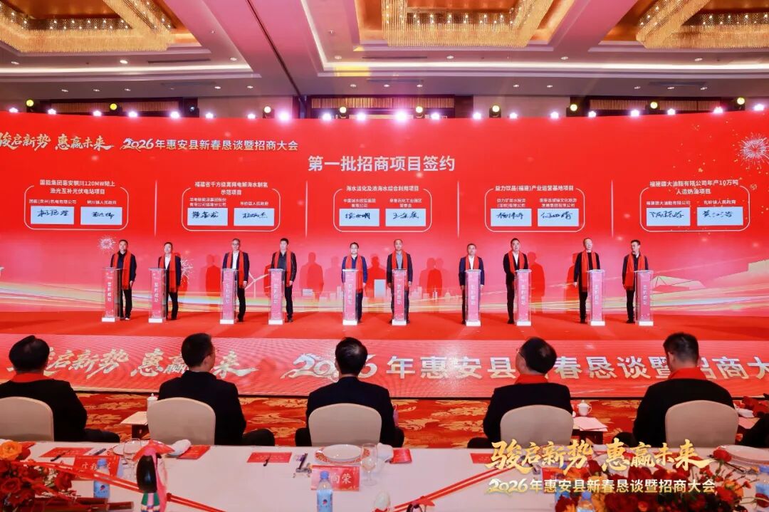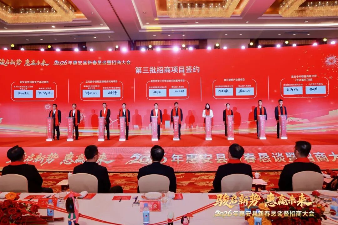 隨后,在與會(huì)領(lǐng)導(dǎo)的共同見(jiàn)證下,20個(gè)重點(diǎn)招商項(xiàng)目分批次集中簽約,總投資額達(dá)258億元。這批項(xiàng)目投資體量大、科技含量高、帶動(dòng)能力強(qiáng),涵蓋新能源、新材料、高端制造、文旅融合、鄉(xiāng)村振興、智慧城市等多個(gè)領(lǐng)域,將為惠安“十五五”開(kāi)局起步注入澎湃動(dòng)能。