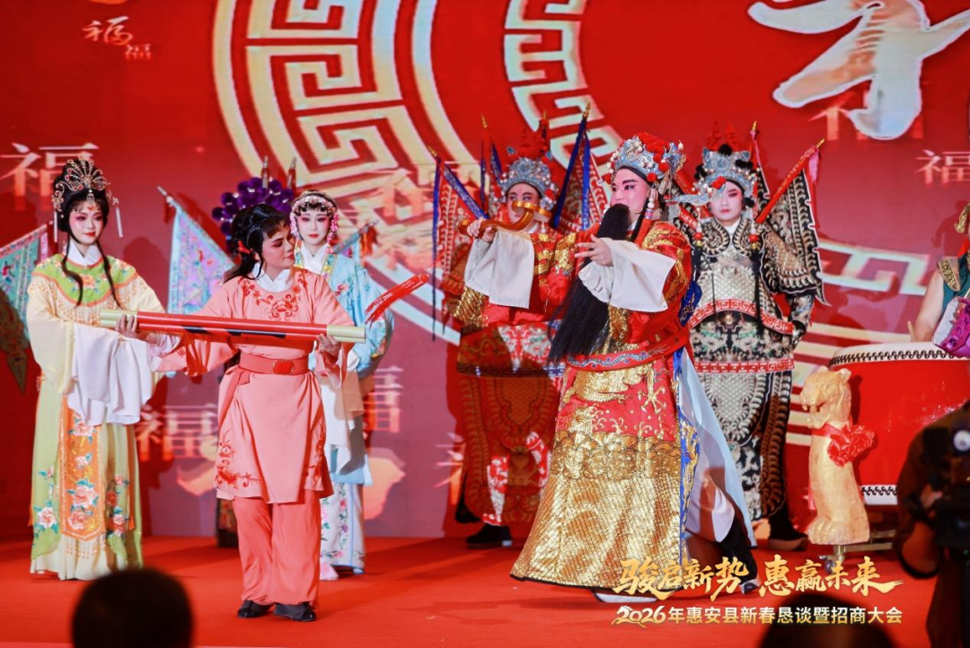 活動(dòng)伊始,一場(chǎng)匯聚惠安非遺精粹的視聽(tīng)盛宴拉開(kāi)大會(huì)序幕。非遺串燒《惠安有戲》將惠女服飾、南音、木偶戲等傳統(tǒng)文化瑰寶搬上舞臺(tái),讓嘉賓在方寸之間感受千年文化的別樣風(fēng)華;詩(shī)朗誦《惠安這一年》以深情的筆觸回望過(guò)去一年的發(fā)展足跡,一字一句皆是奮斗的回響;歌曲演唱《惠安歡迎您》用悠揚(yáng)的旋律傳遞著這座城市的熱情與好客,向八方賓朋發(fā)出誠(chéng)摯邀約。精彩的演出既展現(xiàn)了惠安深厚的文化底蘊(yùn),也為新春盛會(huì)增添了喜慶祥和的氛圍。