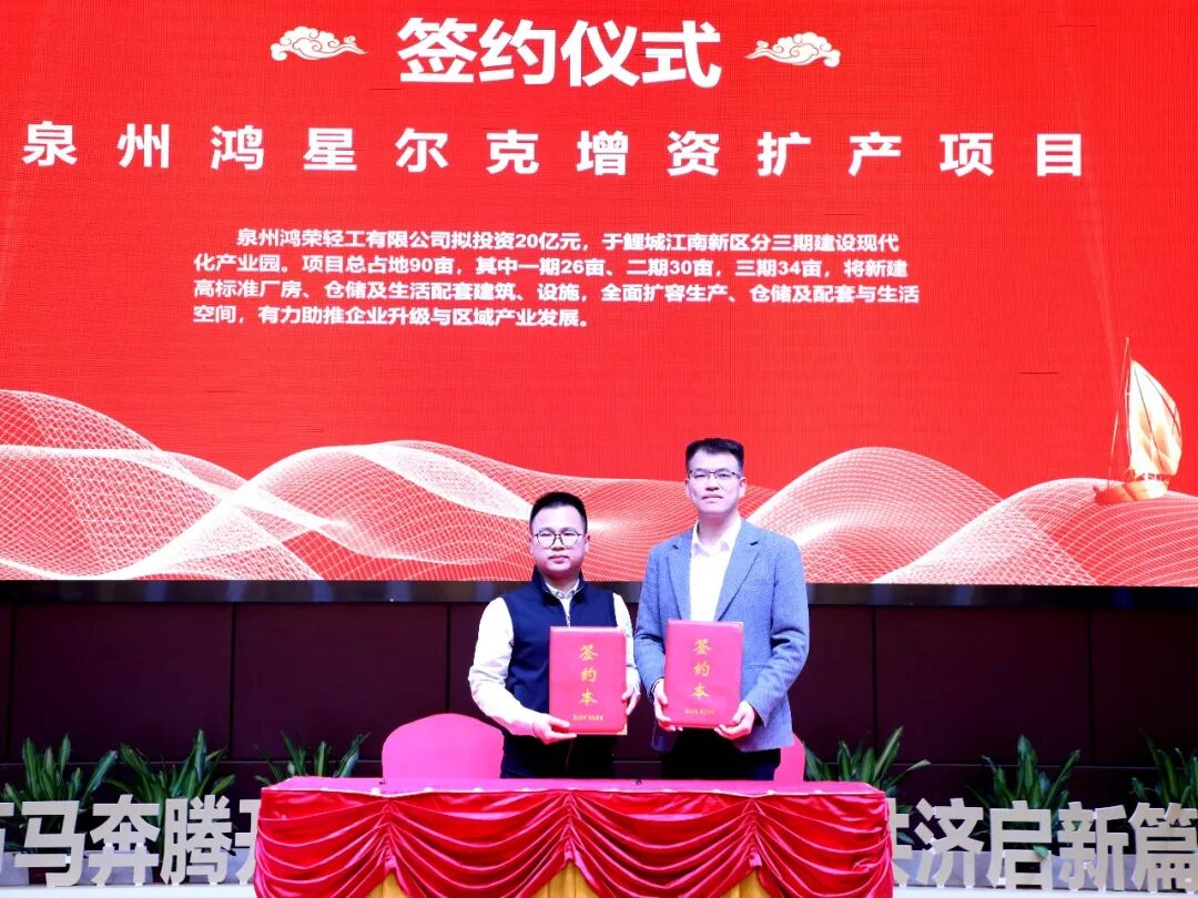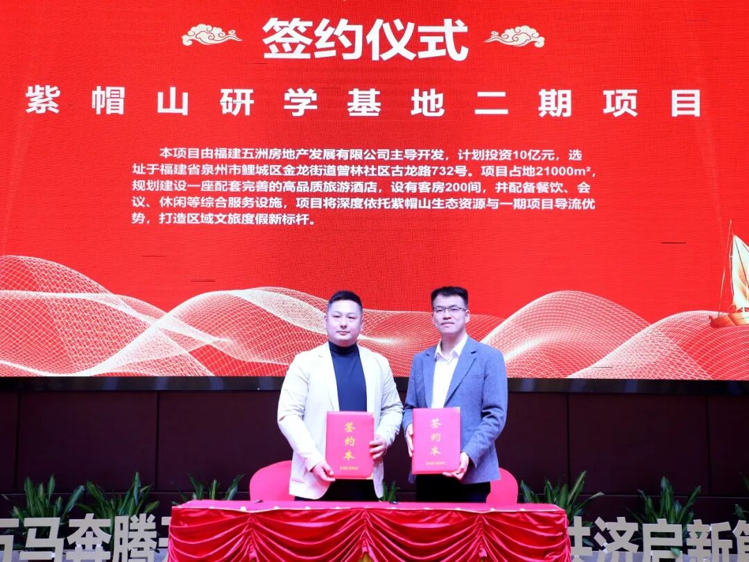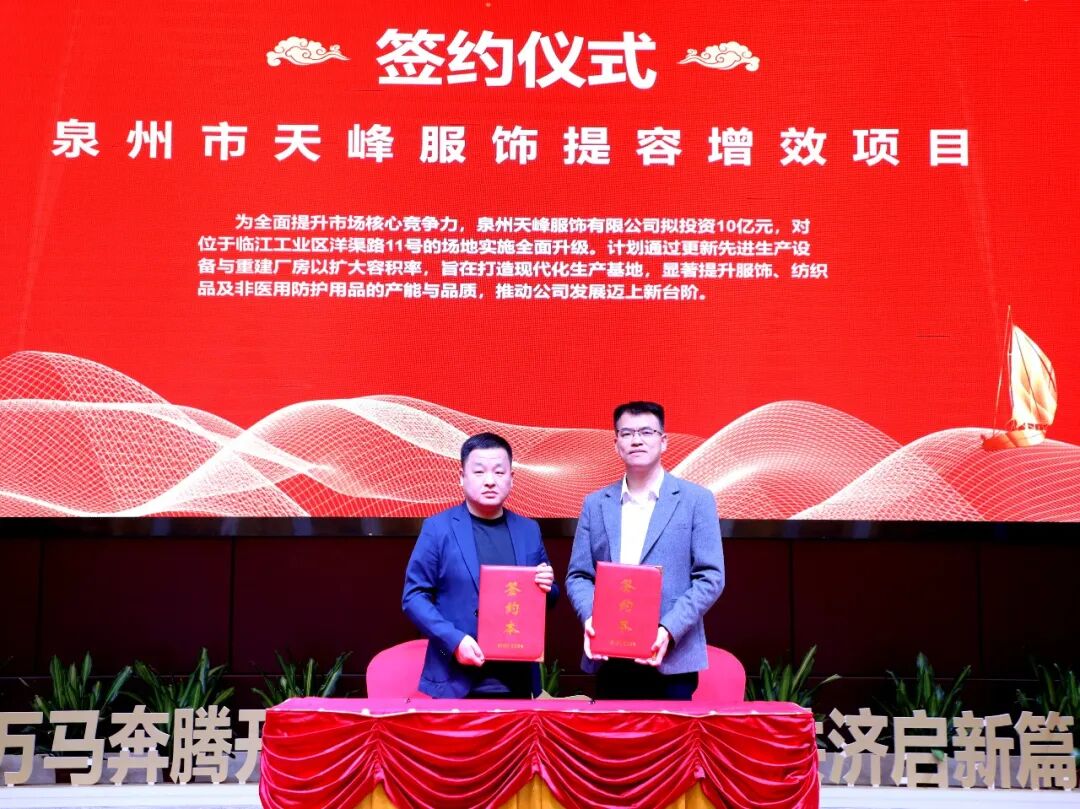 現(xiàn)場,泉州鴻星爾克增資擴(kuò)產(chǎn)、筍江北路高端酒店、紫帽山研學(xué)基地二期、泉州市天峰服飾提質(zhì)增效等4個項(xiàng)目集中簽約,總投資50億元,涵蓋文旅經(jīng)濟(jì)、紡織服裝等多個領(lǐng)域,為金龍街道新一年產(chǎn)業(yè)發(fā)展注入強(qiáng)勁動能。