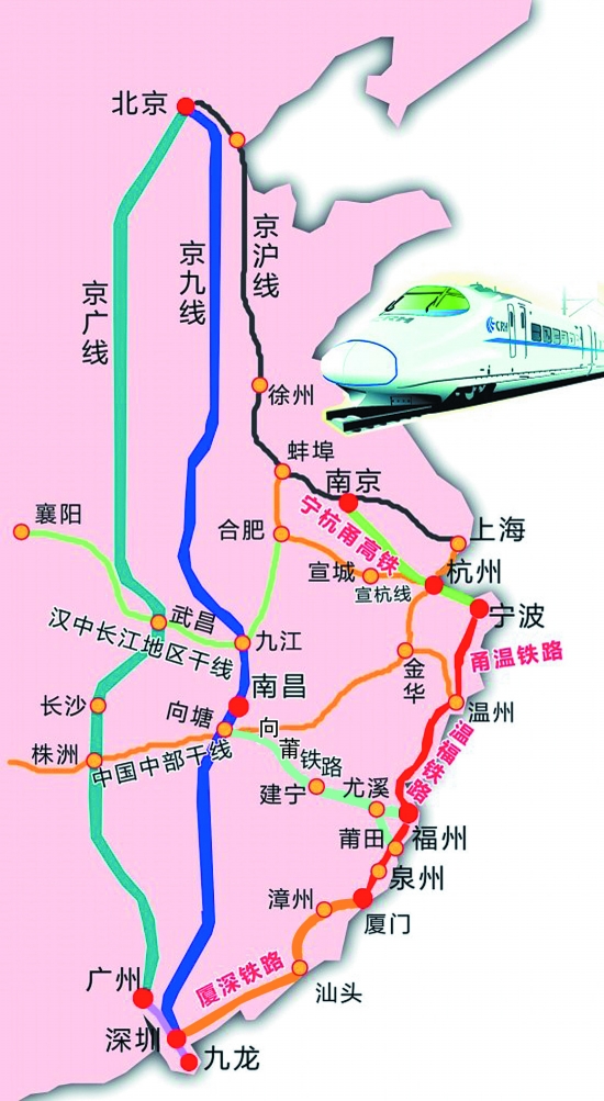 另據(jù)廣東媒體報道稱,廈深鐵路開通以后,擬開行的D字頭動車31對,其中深圳北至上海虹橋4對、南京南1對、杭州東1對、溫州南1對、福州南6對、廈門北5對、龍巖2對、潮汕9對,以及廣州南至福州南2對。