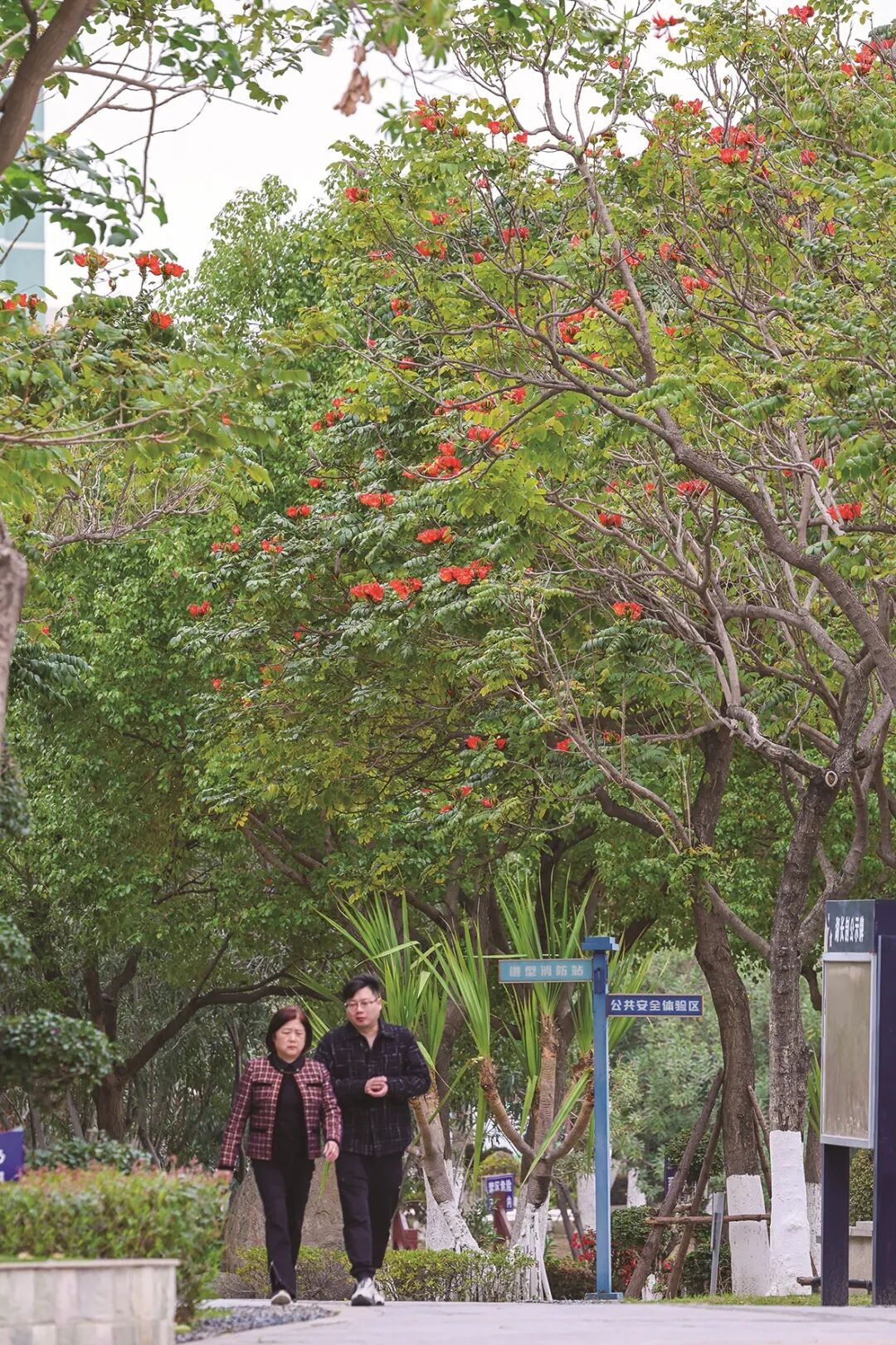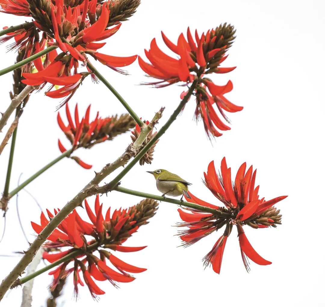 在龜湖公園,刺桐花最先把春天的熱鬧勁兒給點起來。艷紅的花瓣像小喇叭似的張開著,小鳥落在枝丫上,平添了不少生機。西洋公園里的火焰樹也不甘示弱,綠葉間攢著一團團朱紅的花簇,熱熱鬧鬧的,仿佛要把太陽的光都揉進(jìn)花瓣里。