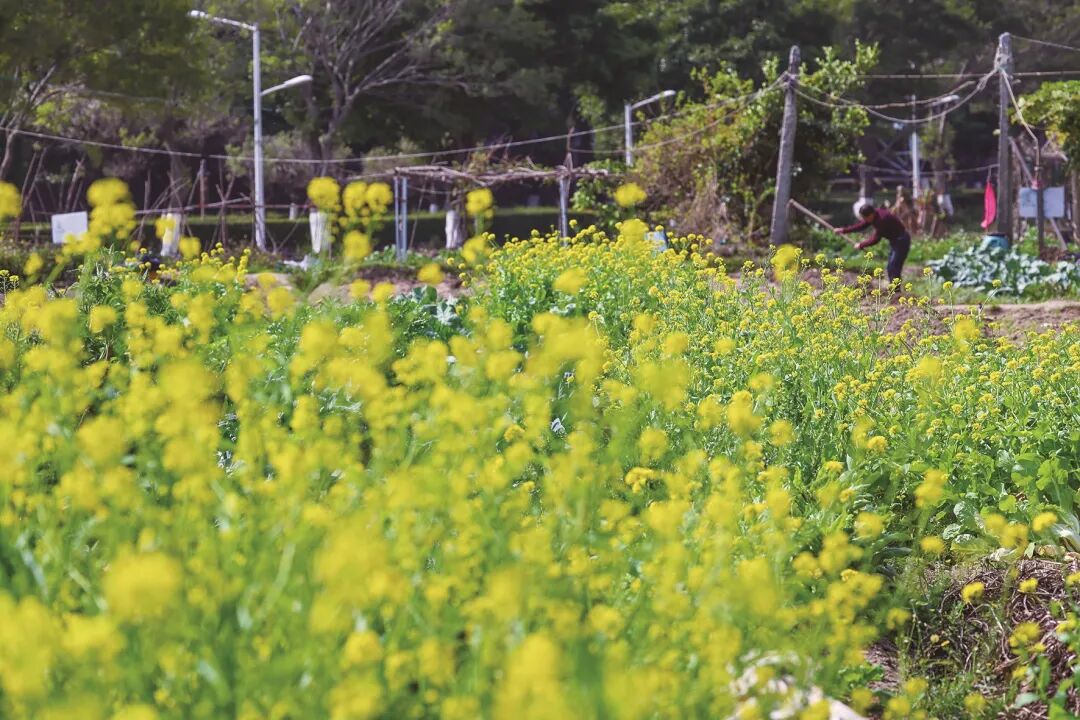 在龍穴村外的田埂上,油菜花也開了。風(fēng)一吹,花浪起伏,帶著泥土和油菜花的清香,蜜蜂在花叢里嗡嗡地鉆來鉆去,忙著采蜜。村民掄起鋤頭在田間勞作,身影在花海里時隱時現(xiàn),這鄉(xiāng)野的春景,比城里的花更添了幾分踏實的煙火氣。
