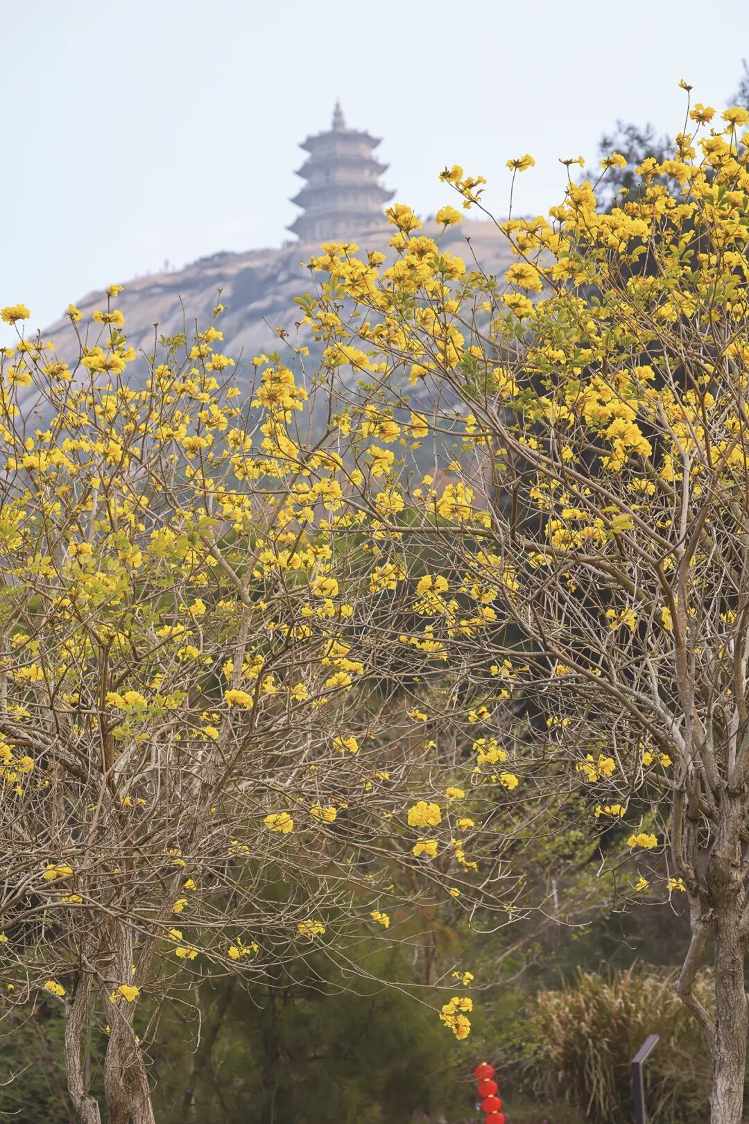 沿著峽谷旅游路漫步,黃花風(fēng)鈴木開得正盛。一叢叢黃花掛在枝頭,風(fēng)一吹就晃悠悠的,花浪翻涌,滿眼都是亮堂堂的黃,好像春天的顏色都流到了這里。