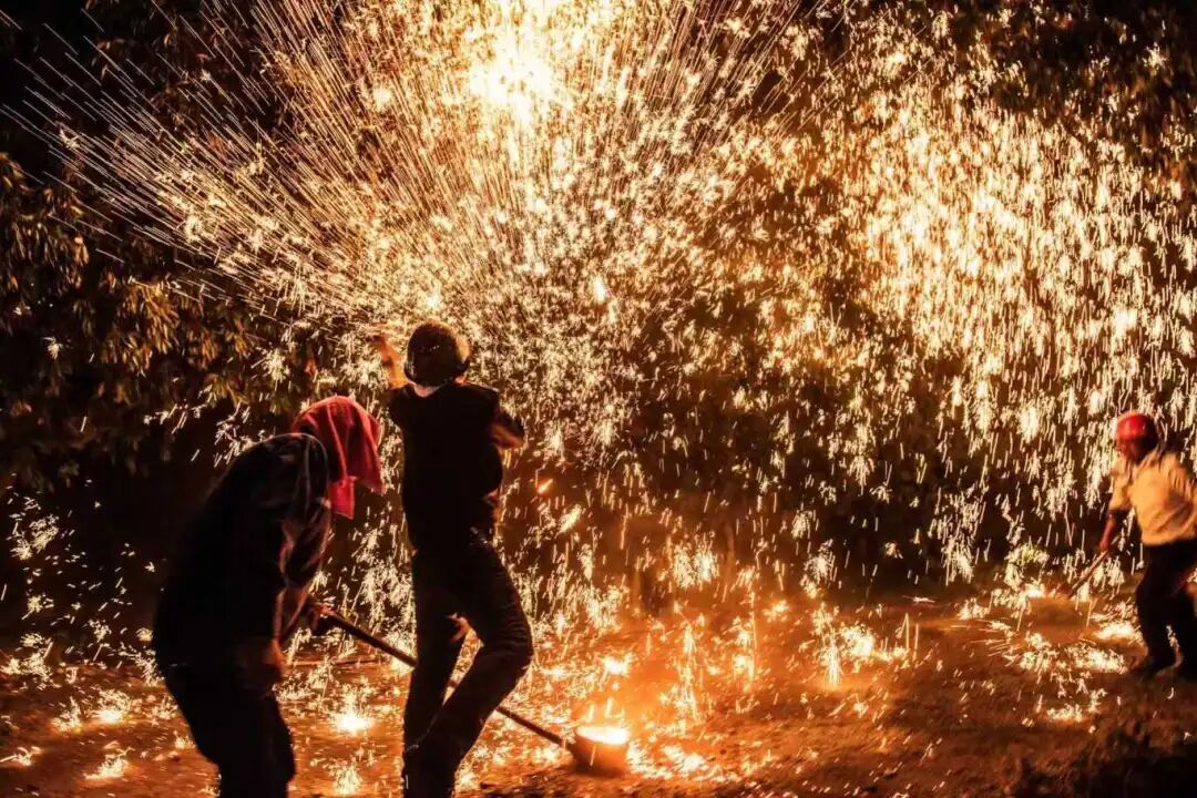 綬溪公園“打鐵花”鬧元宵