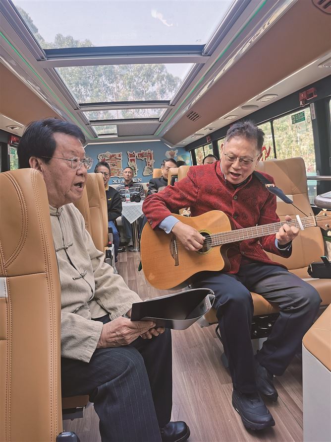 廈門市閩南文化研究會閩南吟社顧問兼秘書長陳榮韜全程參與了此次活動。他表示,這是社團首次嘗試在移動的巴士上開展吟誦活動,效果出乎意料的好。“一邊吟誦詩詞,一邊欣賞廈門的美景,這種沉浸式的體驗讓非遺傳播更具感染力。”陳榮韜說,社團一直致力于推廣詩詞閩南方言吟誦,希望借助多樣化的場景,讓這一閩南傳統(tǒng)藝術(shù)形式走出劇場、融入城市生活,讓更多人了解和感受其獨特魅力。
