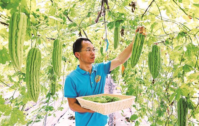 五顯鎮(zhèn)做強(qiáng)種業(yè)“芯片”,圖為農(nóng)運來苦瓜育種基地,該基地占據(jù)全國苦瓜種子市場的30%。