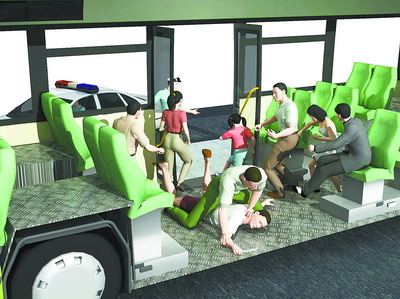 這時,朱馬飛看見這名男子將手伸進(jìn)小女孩衣服內(nèi),他立即起身大吼一聲:“馬上放手!”“關(guān)你什么事?”這名男子并不示弱,一邊喊著一邊起身從口袋里掏出一把長約20厘米的彈簧刀,在朱馬飛面前不?;蝿印V車丝鸵姷搅灵W閃的刀子,頓時慌亂起來,紛紛向后躲閃。由于車內(nèi)人較多,離男子最近的乘客不到一米,公交車內(nèi)充滿了恐慌。