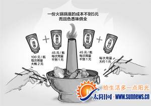 大骨熬制,秘制鍋底,上等食材……這是許多火鍋店打出的誘人廣告語,但這些火鍋是否真的如廣告所說?為此,晨報(bào)記者連日對(duì)廈門火鍋業(yè)市場(chǎng)進(jìn)行暗訪,發(fā)現(xiàn)有店家公開售賣辣椒精、火鍋紅、一滴香和飄香劑,并聲稱廈門火鍋沒有一家不加這些添加劑。同時(shí),據(jù)記者測(cè)算,大概只要三五元的成本,就能做成一份大骨鴛鴦鍋。