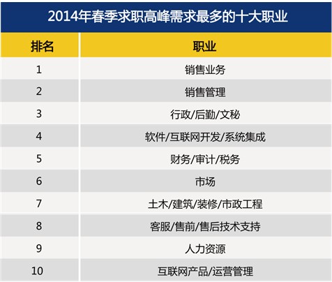1、2014年全國需求最旺盛的十個職業(yè)