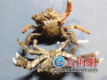 大鼓魚店的店主老張給這兩只怪蟹起名叫“蟹神”?!八鼈兒馨詺?,也很有殺氣,眼神可兇了?!逼匠?,張先生對那些兇猛的魚類和蟹類都敢用手抓,但這次卻對“蟹神”敬而遠之?!澳_上還帶了尖尖的鉤,像鷹爪,很鋒利的樣子?!睋?jù)老張介紹,這兩只螃蟹是在臺灣海峽的深海捕撈到的。“很巧,剛好一公一母,有幾十年捕撈經(jīng)驗的船老大開玩笑說它們倆是出來約會散步才不小心被抓到的,要不然很難有機會讓人類見識到這么奇怪的螃蟹?!?/P>
