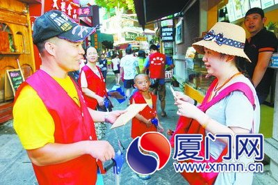 思明城市義工昨日在曾厝垵進(jìn)行文明宣導(dǎo)活動(dòng)。(廈門晚報(bào)記者 王協(xié)云 攝)