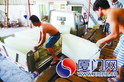 老蘇是個中年漢子,龍海人,三個月前還是建筑工地的工人,因為天氣太熱,聽說制冰廠招工人,朋友介紹他來這里當(dāng)臨時工。