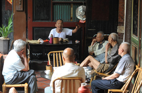 老許是土生土長的泉州人,在茶館用閩南語講古8年了,每天固定說上2小時,風(fēng)雨無阻。講的內(nèi)容也很豐富,既有中國歷史神話傳說,也有不少流傳在泉州民間的故事。